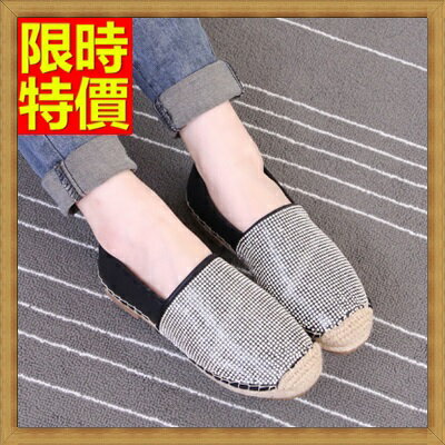 ☆懶人鞋休閒鞋-時尚水鑽麻繩草編女平底鞋2色65z12【獨家進口】【米蘭精品】